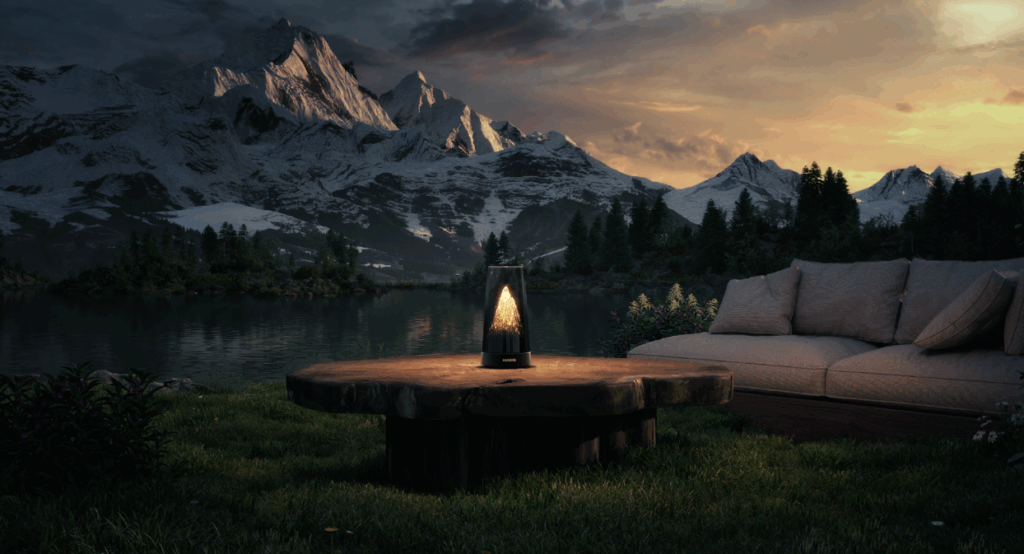 De hecho, va más allá de ser solo un router, incorpora efectos de iluminación que cambian según la hora del día para recrear los tonos del amanecer y el atardecer sobre la montaña. Además, su iluminación permite ambientar e iluminar parte de una habitación.