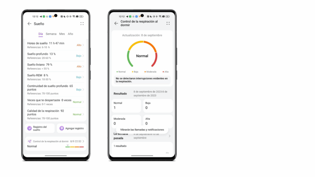 Asimismo, ayuda a detectar cambios anormales fisiológicos durante el descanso, ofrece un análisis de sueño por fases, mejoras en la detección de las horas de sueño, hora de despertar, detección de las interrupciones del sueño y monitoreo de la variación de la frecuencia cardiaca (VFC).